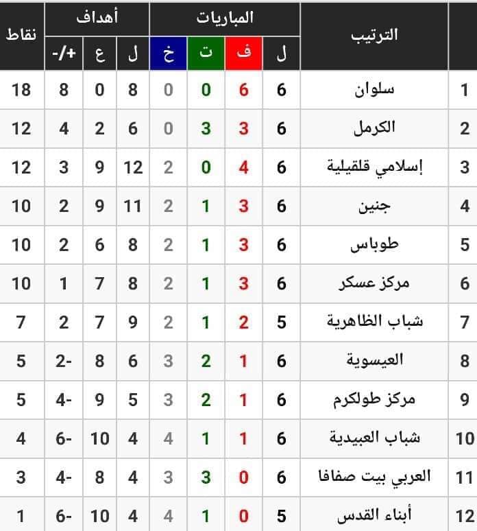 وهناك مباراة مؤجلة للظاهرية وأبناء القدس ضمن منافسات الجولة 4 من المسابقة وتم تحديد يوم الثلاثاء لاقامتها.