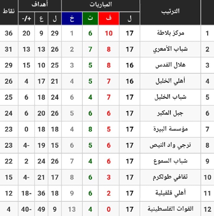وبهذا الفوز رفع الهلال رصيده إلى 29 نقطة في المركز الثالث (ناقص مباراة)، بفارق 7 نقاط خلف مركز بلاطة المتصدر، ونقطتين خلف مركز الأمعري الثاني، في حين تجمد رصيد المكبر عند 24 نقطة في المركز السادس.