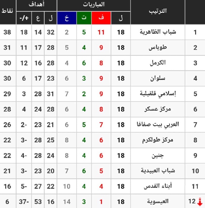 نتائج الجولة 18 وجدول ترتيب دوري الدرجة الأولى - الاحتراف الجزئي :