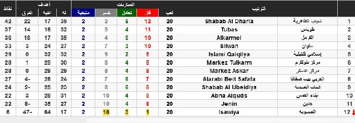واكتسح أبناء القدس فريق العيسوية أول الهابطين (7/0)، ليرفع رصيده إلى 22 نقطة، ويحافظ على آماله بتفادي الهبوط.