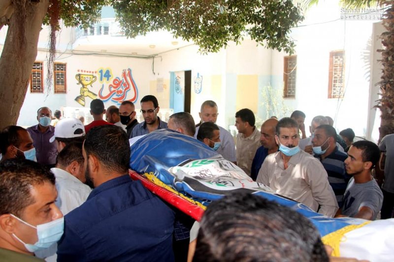 وبعد إلقاء عائلته نظرة الوداع الأخيرة على جثمانه الذي وشح براية الزعيم، انطلق الموكب إلى مقر نادي شباب رفح، بحسب وصيته، ومن ثم إلى مسجد بدر وسط المحافظة.