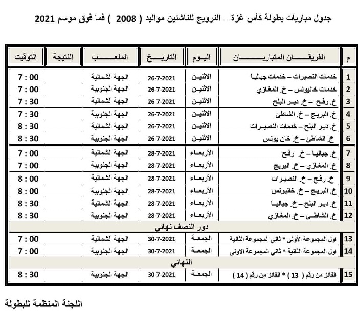 جدول مباريات بطولة كأس غزة لأندية الخدمات