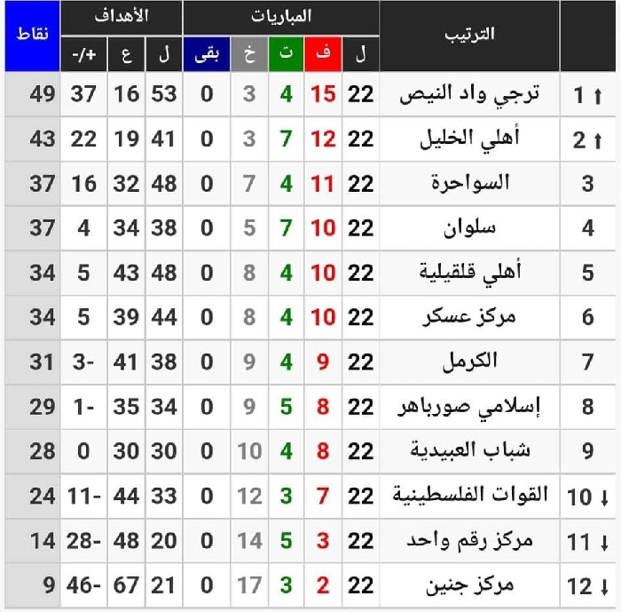 جدول الترتيب النهائي لدوري الاحتراف الجزئي .. الذي شهد عودة ترجي واد النيص وأهلي الخليل إلى دوري المحترفين، وهبوط القوات الفلسطينية ومركز رقم واحد، ومركز جنين إلى دوري الدرجة الثانية :