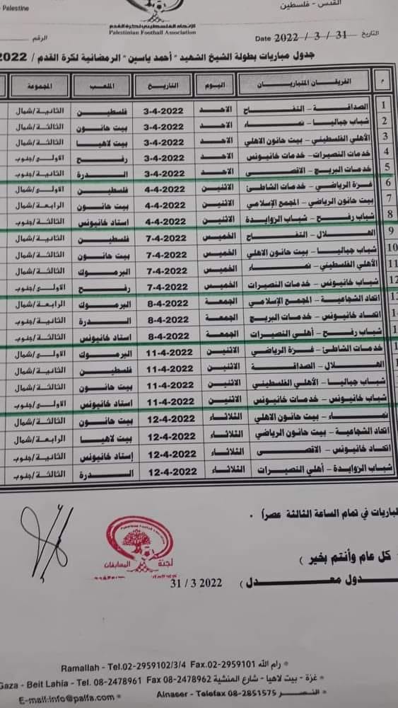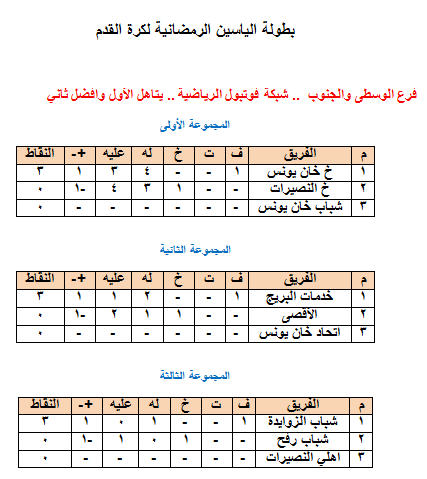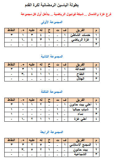 - يتأهل أول المجموعات في فرع غزة والشمال