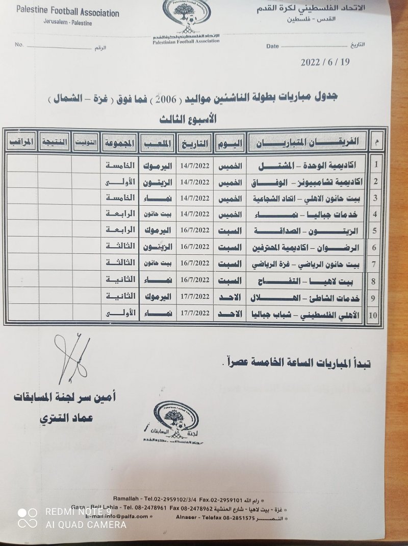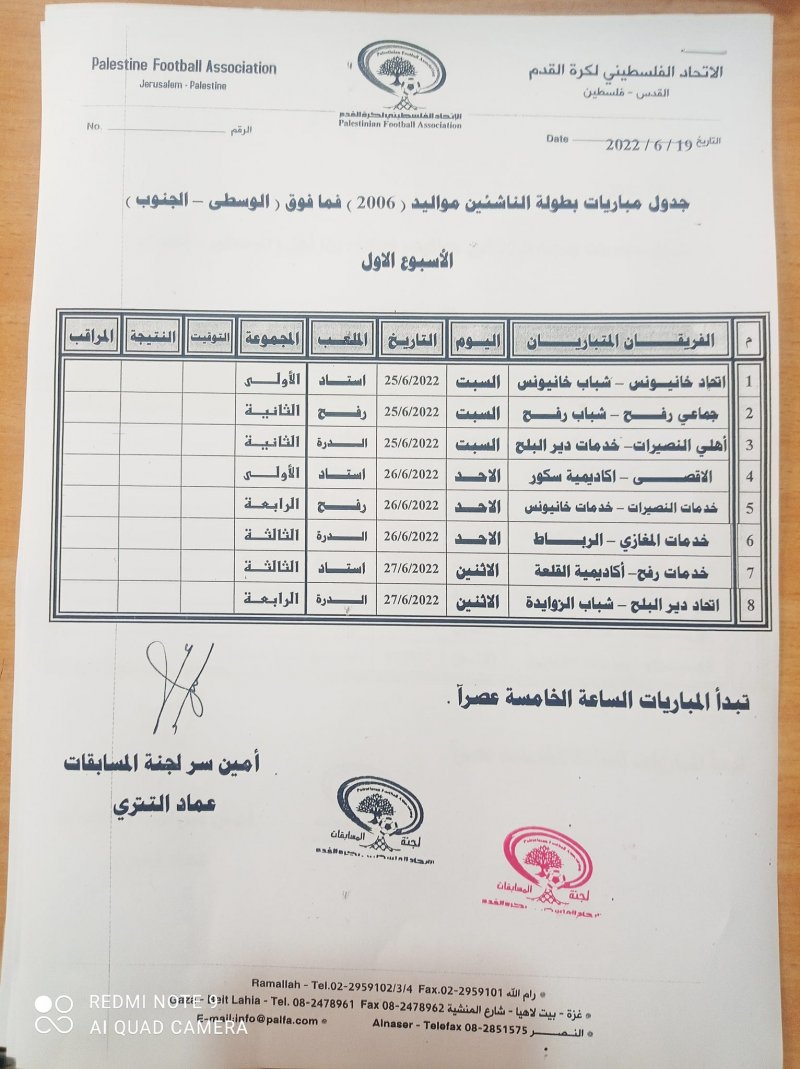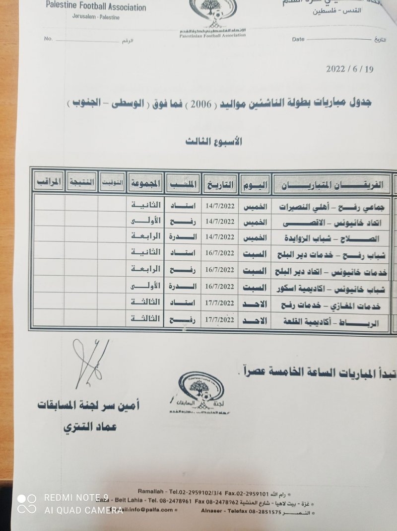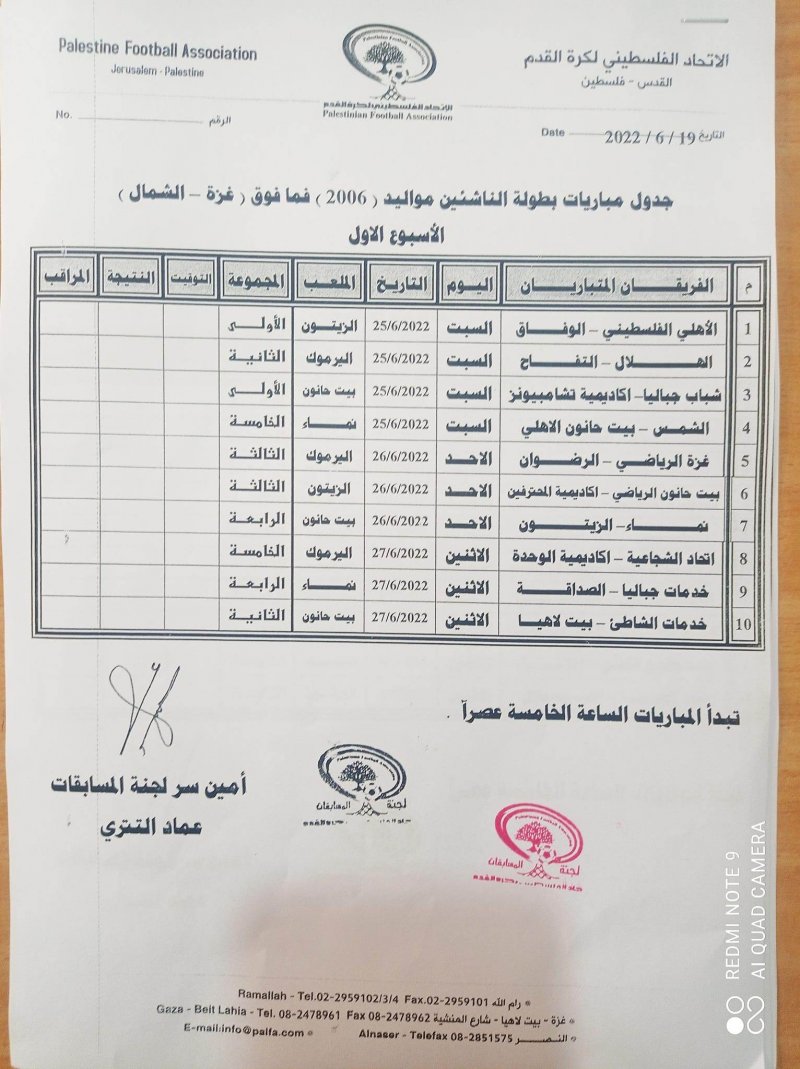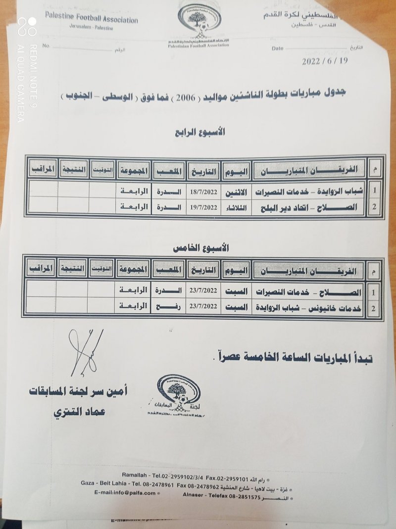 جدول مباريات دوري الناشئين 2006 وما فوق : الصور أسفل