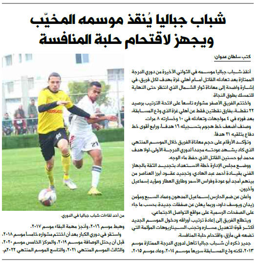 شباب جباليا ينقذ موسمه ويجهز لاقتحام حلبة المنافسة