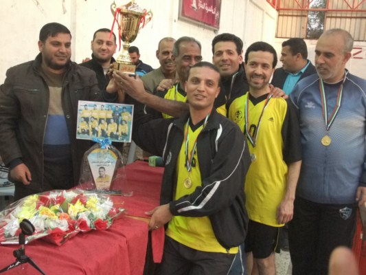 توج فريق قدامي نادي فلسطين الرياضي بكأس الشهيد أيمن الكرد, بعد فوزه على فريق كتلة الصحفي الفلسطيني, بخمسة أهداف مقابل ثلاثة أهداف, في المباراة المثيرة والممتعة و التي جرت بينهما على صالة النادي الأهلي بغزة.