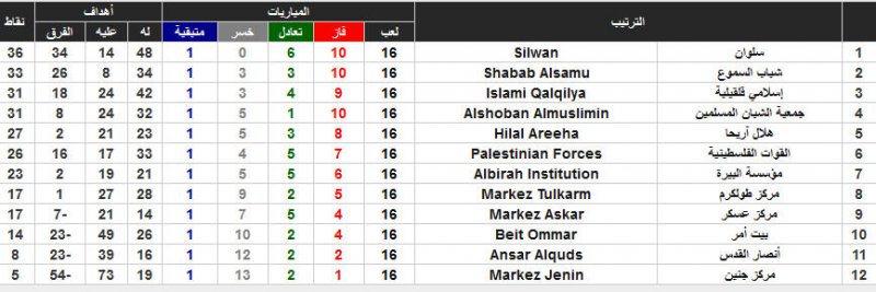 تربع فريق سلوان على عرش صدارة دوري الدرجة الأولى - احتراف جزئي ، برصيد 36 نقطة بعد فوزه الثمين على السموع بثلاثية مقابل هدف ، ويتصدر لؤي نصار لاعب اسلامي قلقيلية برصيد 15 هدفاً ، قائمة هدافي البطولة ، يليه سامر حداد لاعب هلال اريحا بفارق 4 ، محمد ناطور لاعب مركز طولكرم ، حسام زيادة لاعب سلوان ، ثائر أبو دية لاعب جمعية الشبان المسلمين بغلة فوامها 10 أهداف .