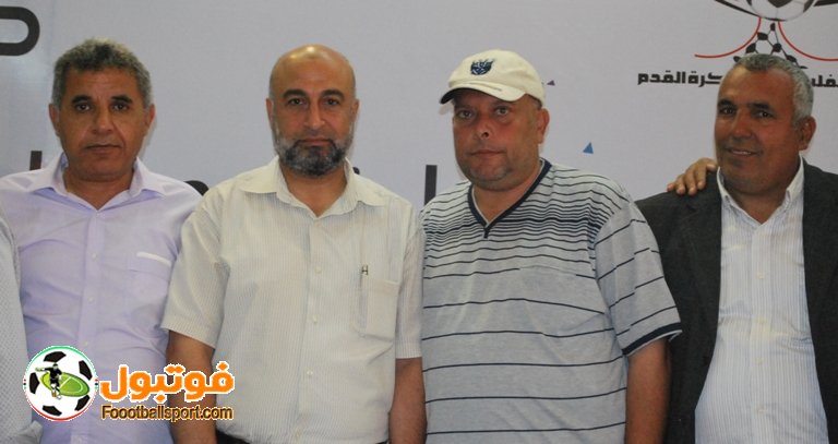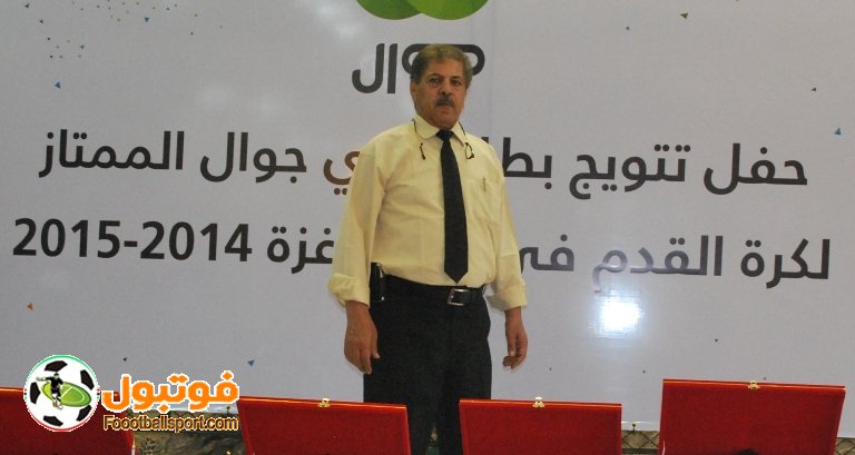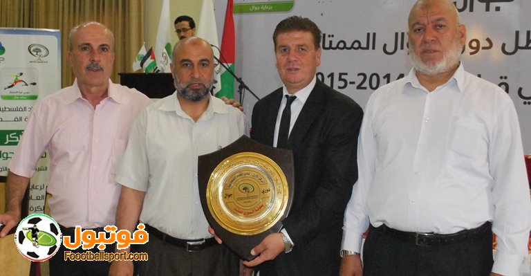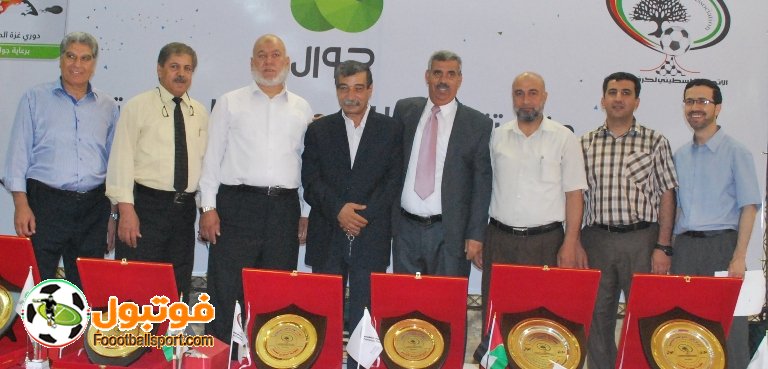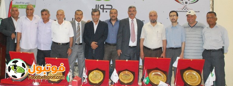 صور ... رؤساء واعضاء مجلس ادارة اتحاد كرة القدم ولجانه ، قبيل بدء الاحتفال بأبطال دوري الدرجتين الممتازة " الشجاعية وشباب خان يونس " والأولى " شباب جباليا وخدمات المغازي موسم 2014 - 2015 برعاية شركة جوال .
