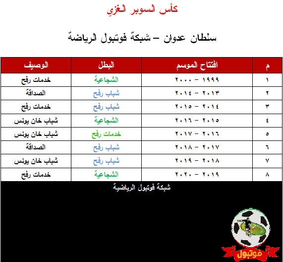 وكان الشجاعية قد توج بلقب النسخة الأولى على حساب خدمات رفح ، والنسخة الرابعة بعد انسحاب شباب خان يونس.