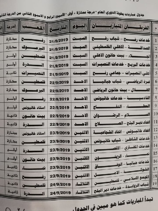 جدول مباريات الأسبوع الرابع من دوري الممتازة والأولى والثاني من دوري الدرجة الثانية للفرعين.