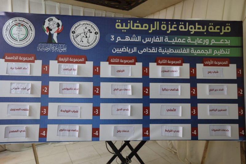 وجرت مراسم سحب قرعة “بطولة غزة الرمضانية” في أجواء احتفالية مميزة، بمشاركة نخبة من قدامى اللاعبين ونجوم المنتخب الوطني السابقين، وأسفرت القرعة عن المجموعات التالية: