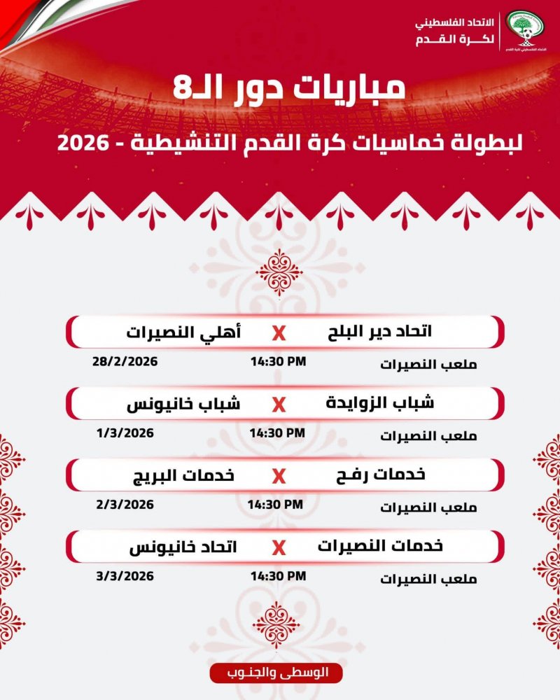 جدول مباريات بطولة غزة الرمضانية لقدامى اللاعبين