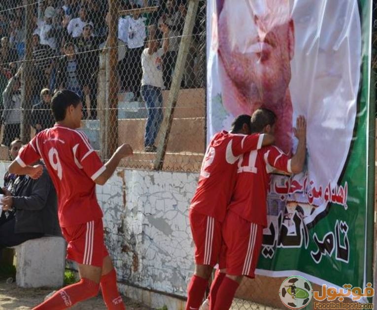 توجه معتز النحال لاعب خدمات رفح عقب تسجيله هدف التقدم في شباك اتحاد الشجاعية ، إلى صورة الشهيد تامر العايدي أبرز مشجعي الكتيبة الخضراء ، ليطبع عليها قبلة عرفان ووفاء لروحه الطاهرة .