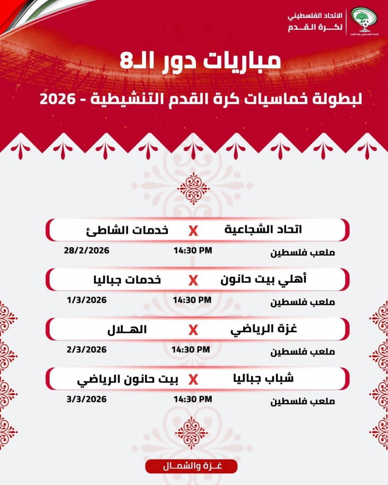 جدول مباريات بطولة غزة الرمضانية لقدامى اللاعبين